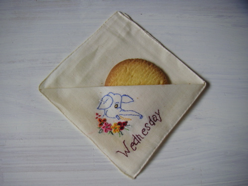 ハンカチに包まれたビスケット、ひとつ。