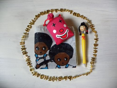 いっしょに、かわいいアフロボーイのハンカチと